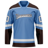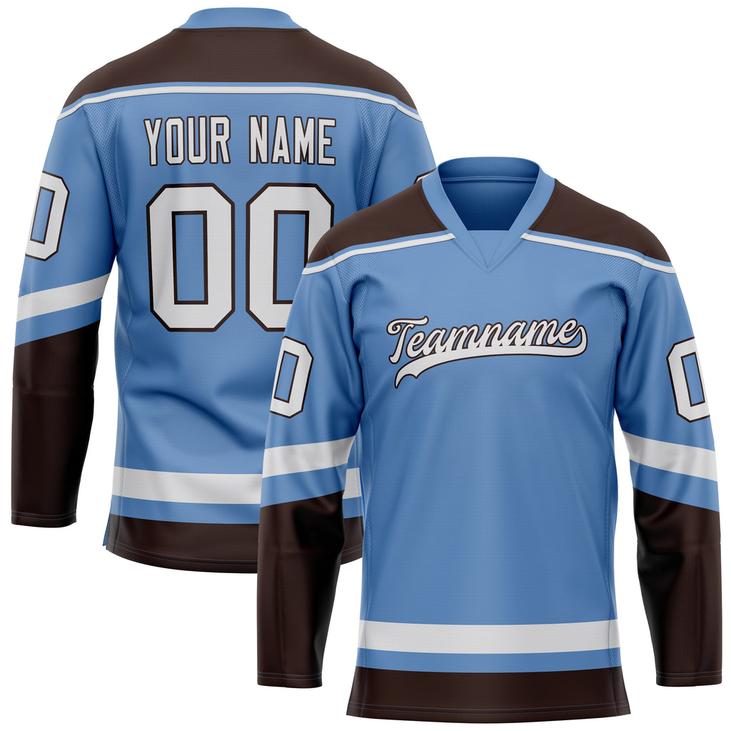 Custom Light Blue Brown Solid Colour Hockey Jersey