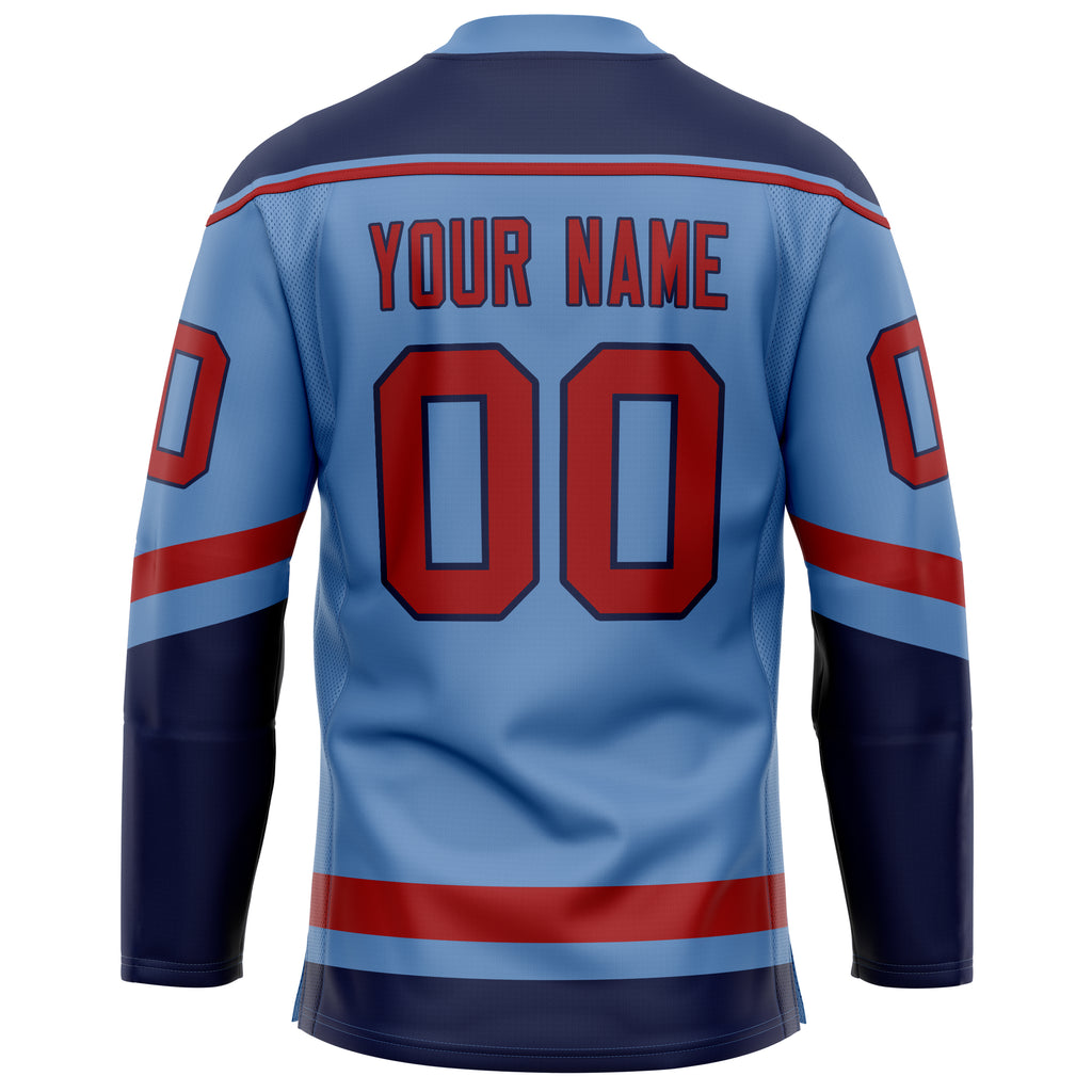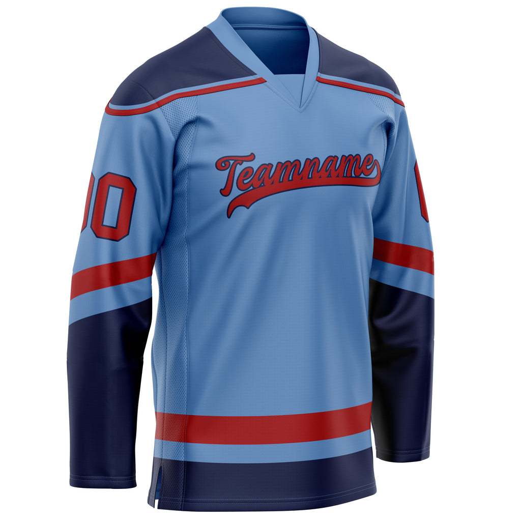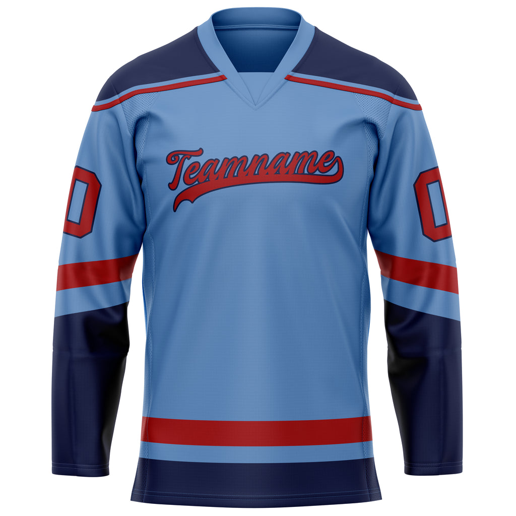 Custom Light Blue Crimson Solid Colour Hockey Jersey