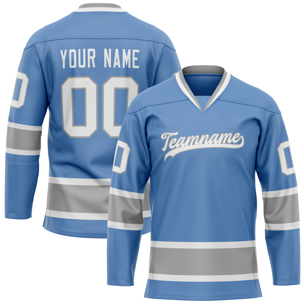 Custom Light Blue Gray Solid Colour Hockey Jersey
