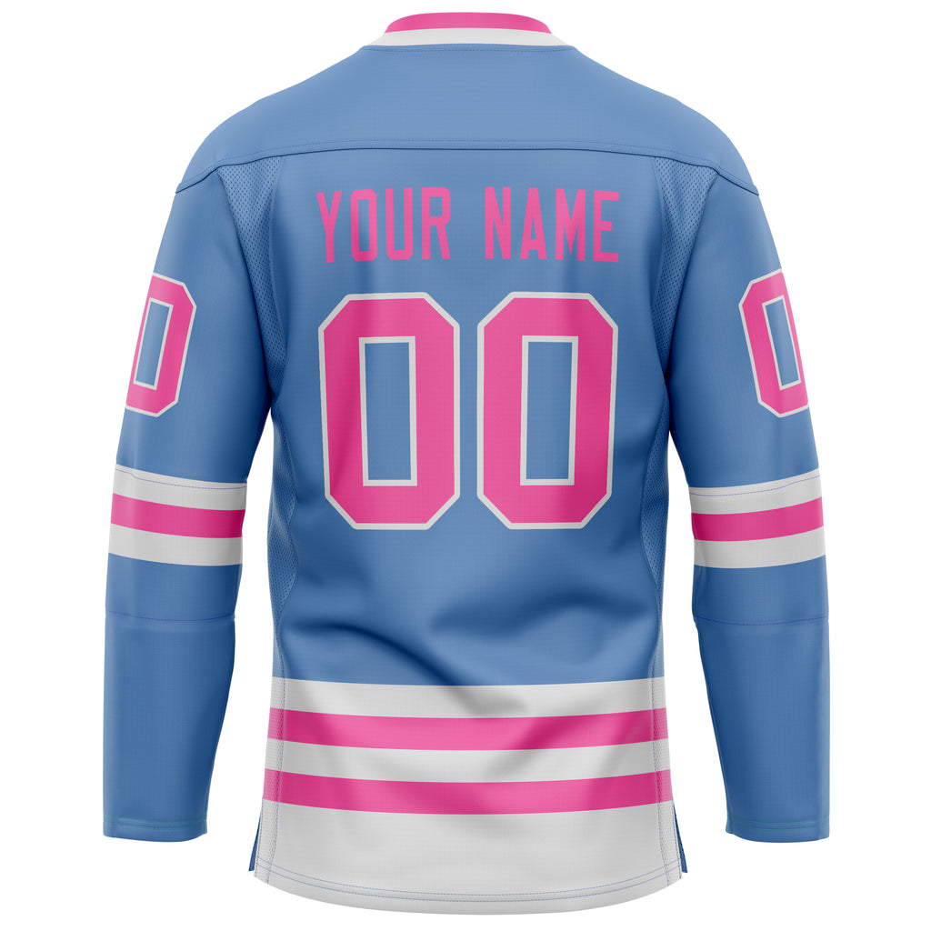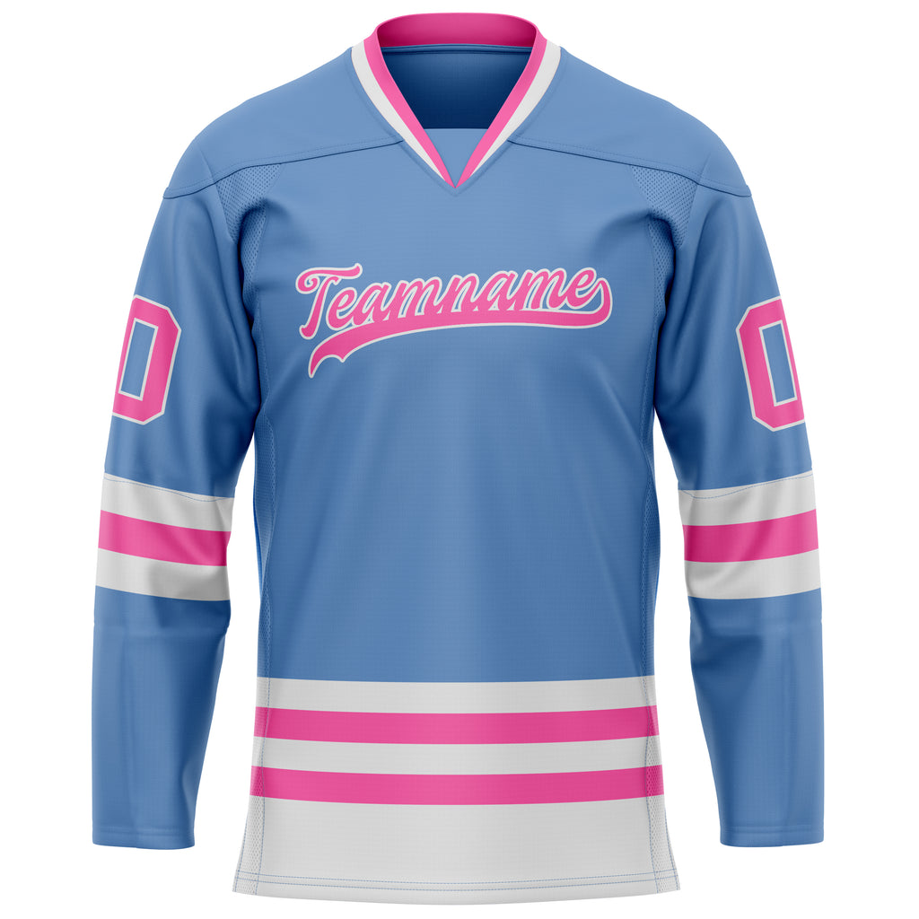 Custom Light Blue Pink Solid Colour Hockey Jersey