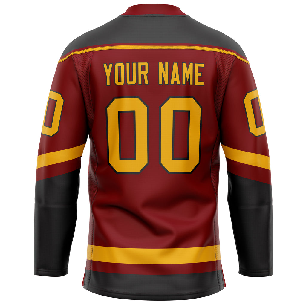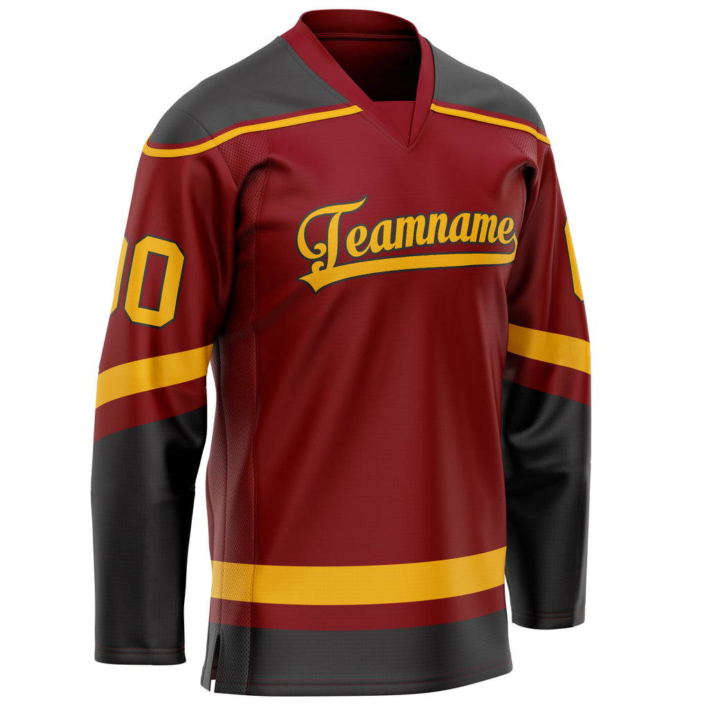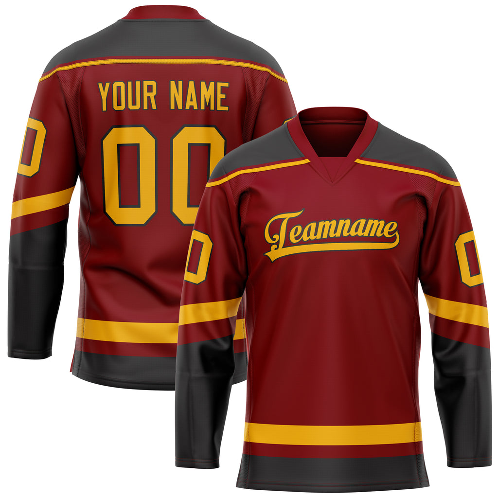 Custom Maroon Gold Solid Colour Hockey Jersey