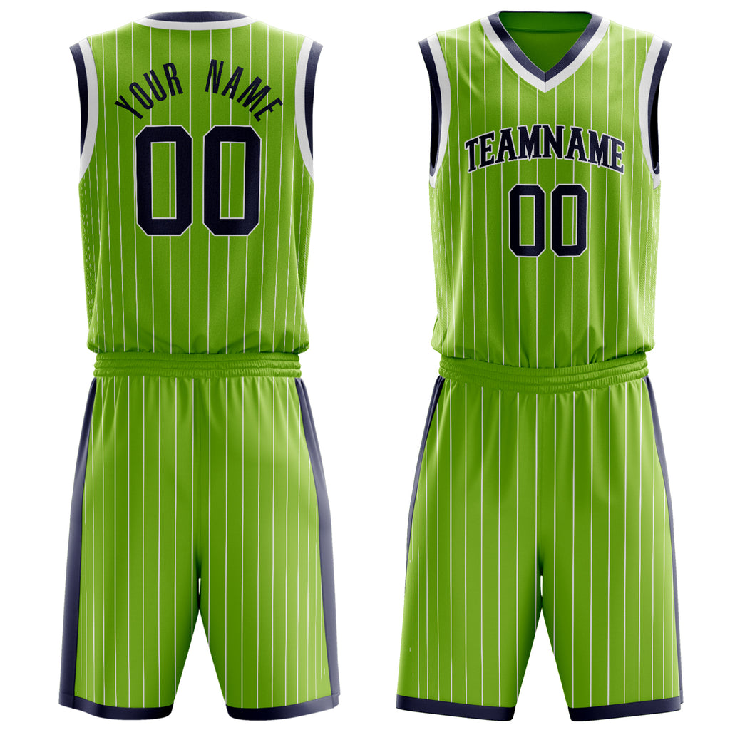 Custom Neon-Green Black Pinstripe Basketball Jersey