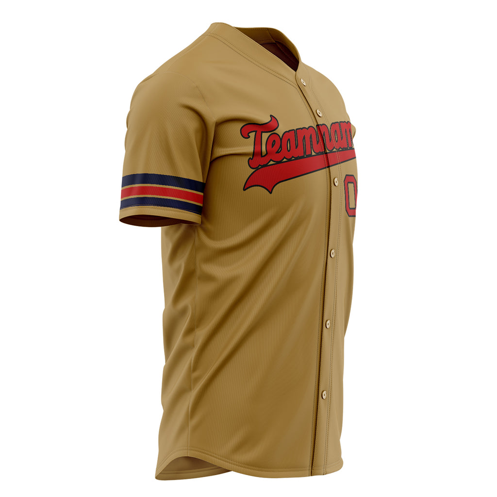 Custom Old Gold Baseball Jersey (With Red Color)