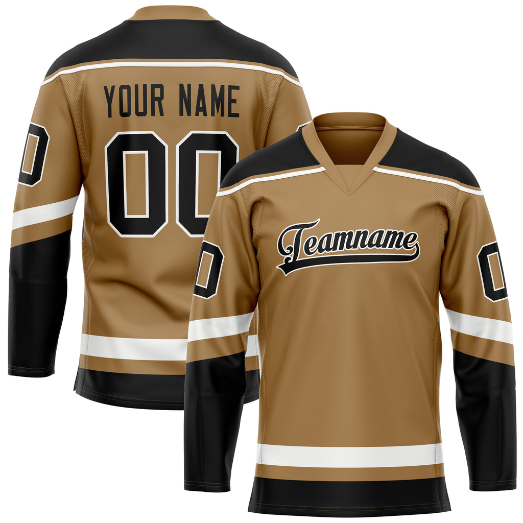 Custom Old Gold Black Solid Colour Hockey Jersey