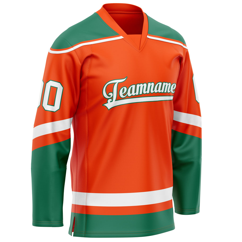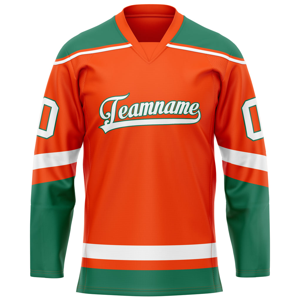 Custom Orange Kelly Green Solid Colour Hockey Jersey