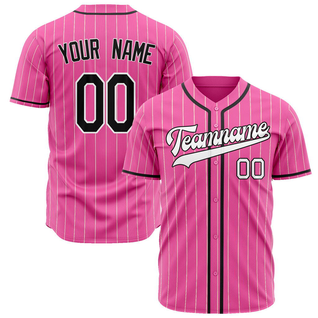 Custom Pink Baseball Jersey (With Black Cream Pinstripe)