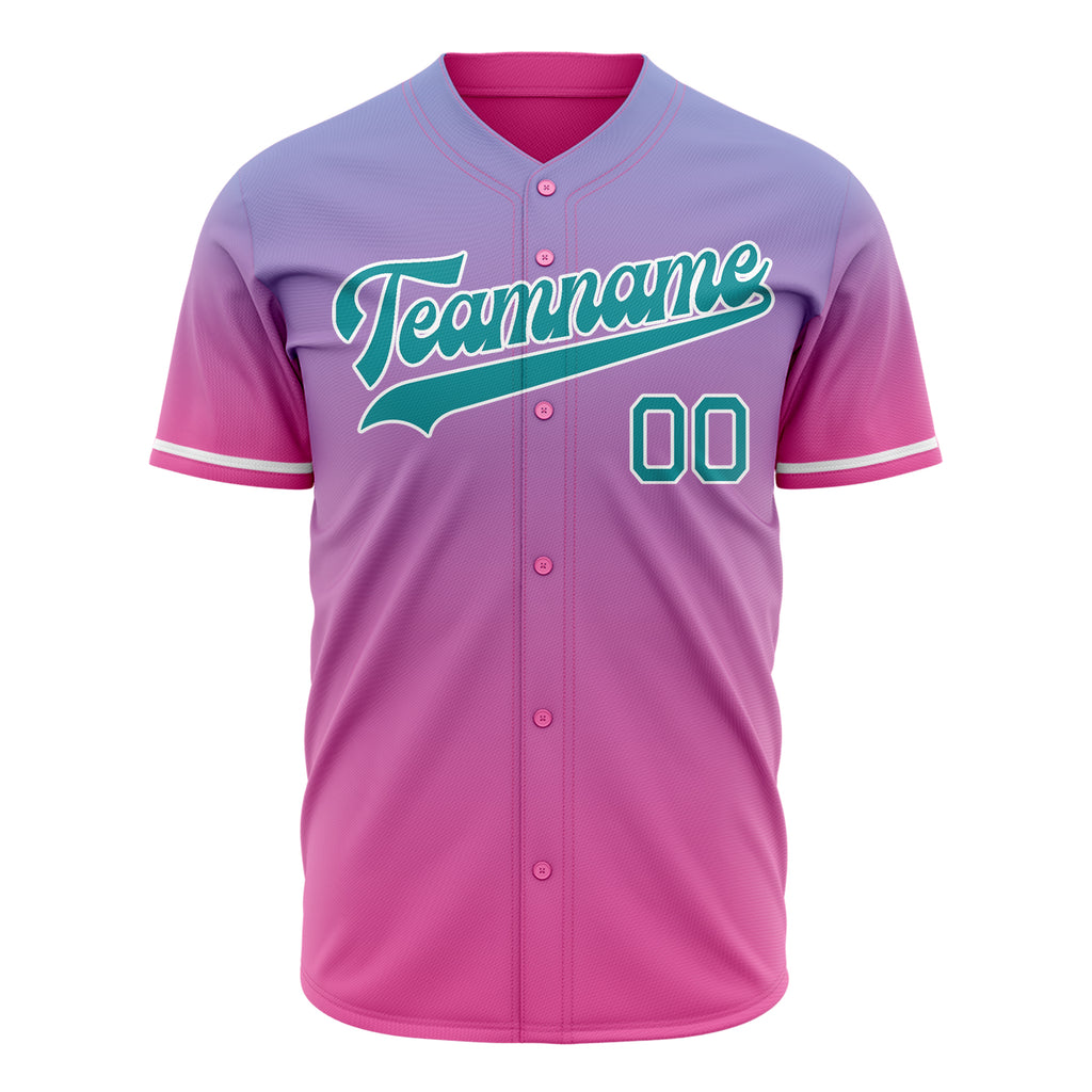 Custom Pink Baseball Jersey (With Teal Pink Blue Gradient)