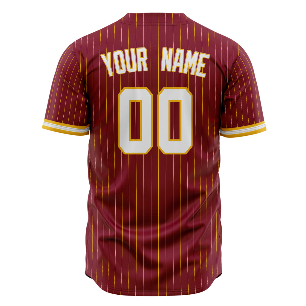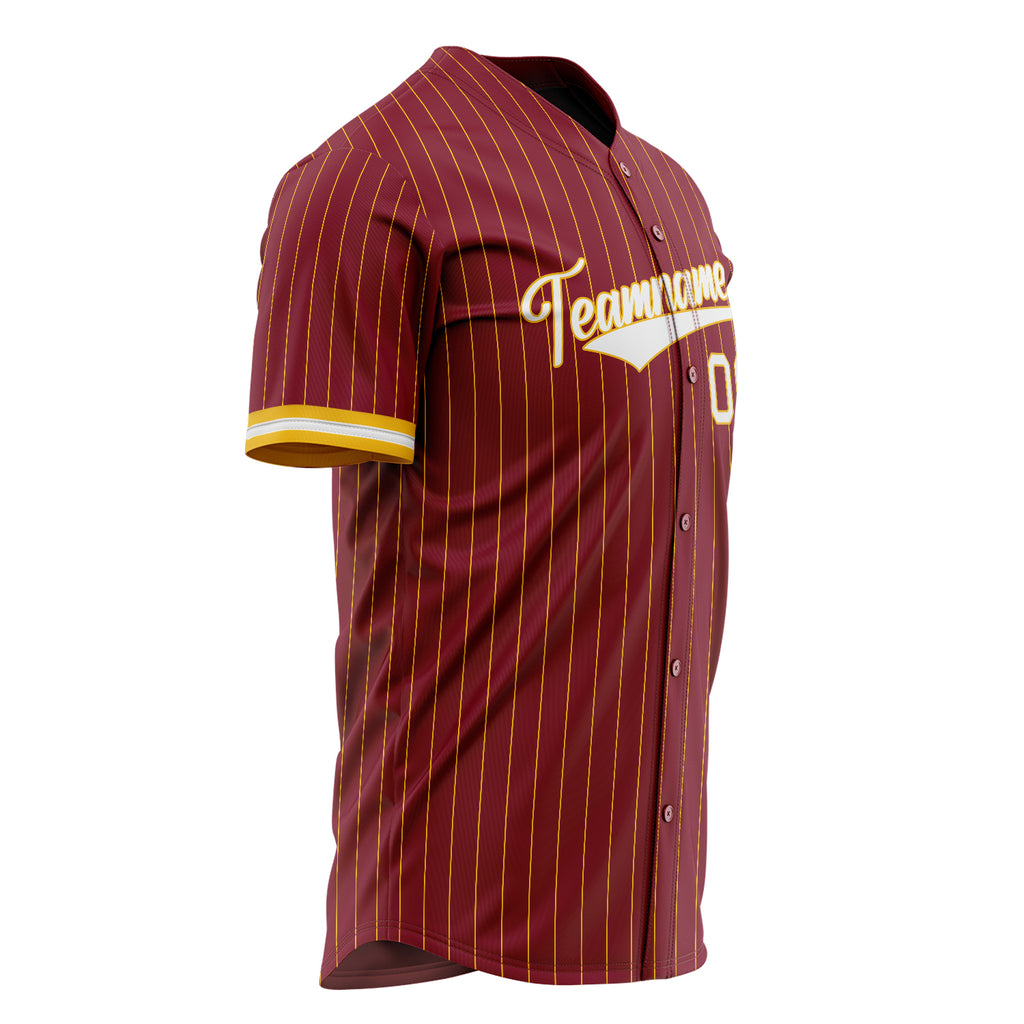 Custom Crimson Baseball Jersey (With White Gold Pinstripe)