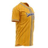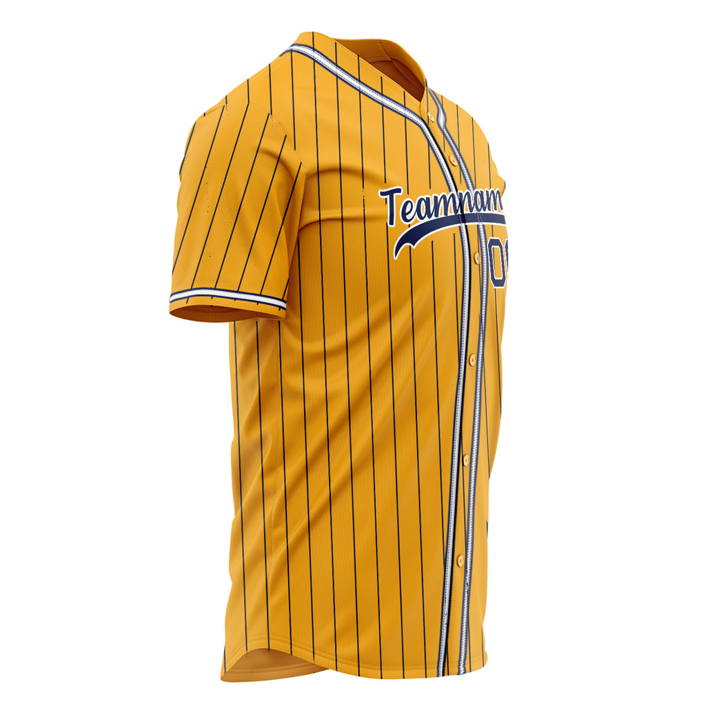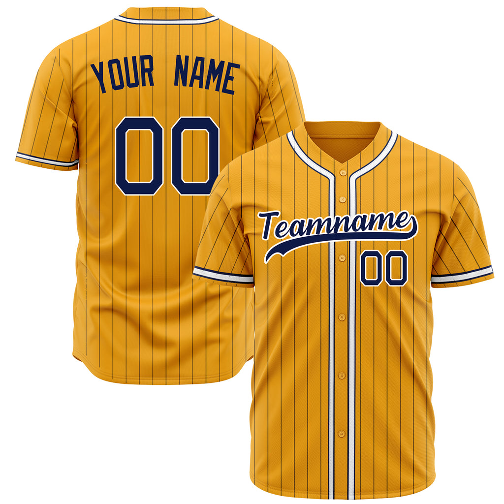 Custom Gold Baseball Jersey (With Navy Navy Pinstripe)