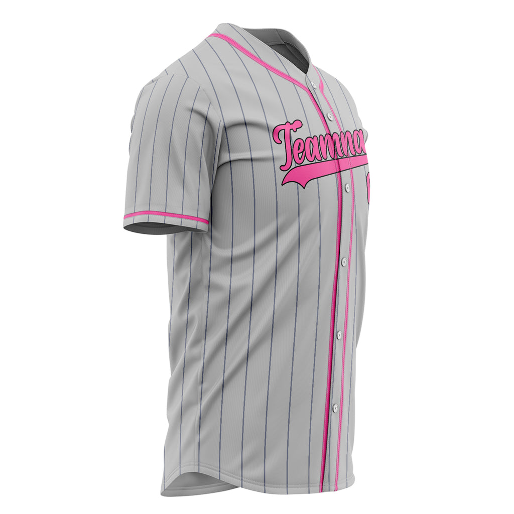 Custom Gray Baseball Jersey (With Pink Steel Gray Pinstripe)