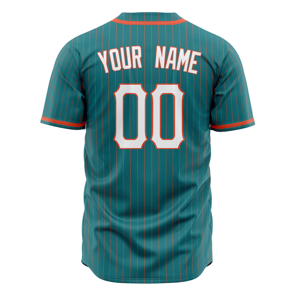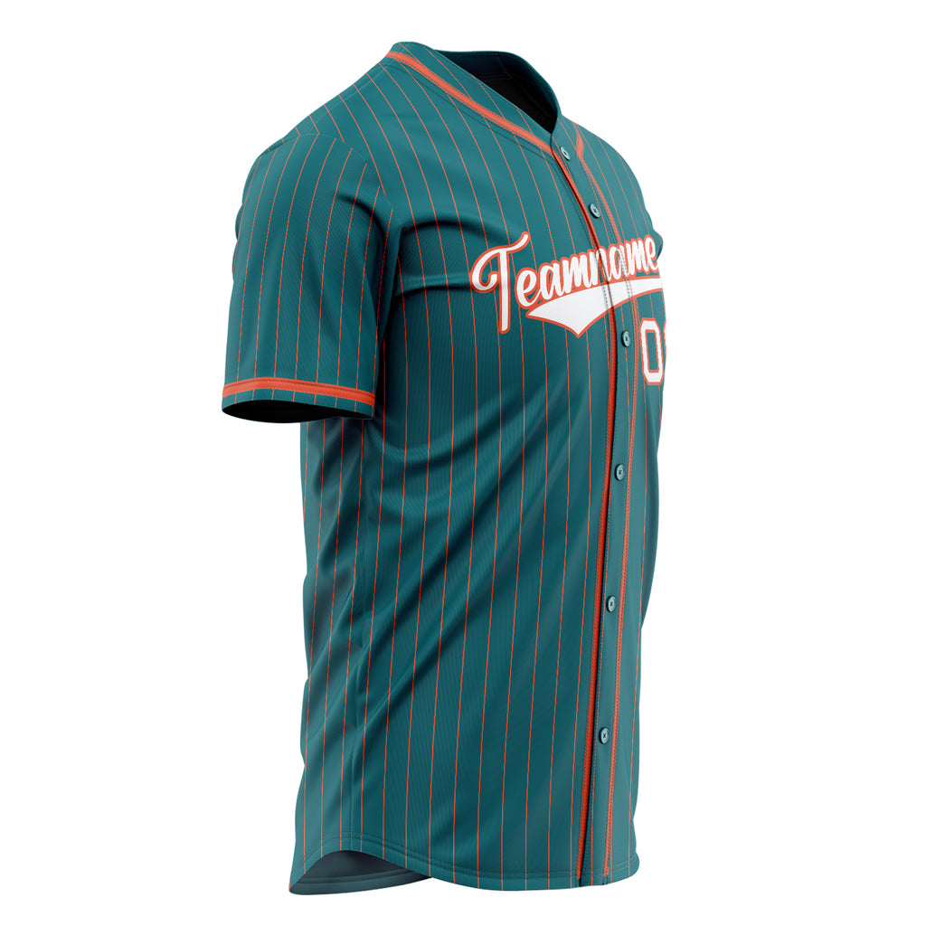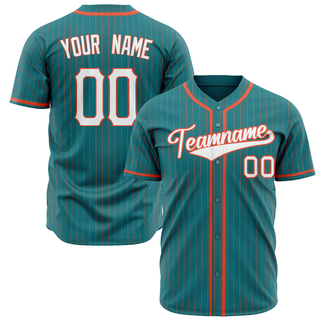 Custom Teal Baseball Jersey (With White Orange Pinstripe)