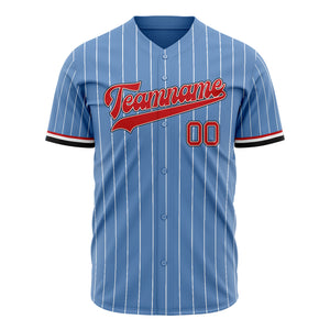 Custom Light Blue Baseball Jersey (With Red White Pinstripe)