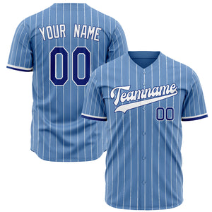 Custom Navy Baseball Jersey (With Light Blue White Pinstripe)