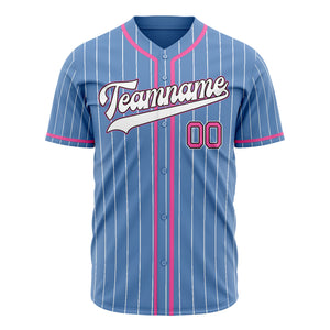 Custom Light Blue Baseball Jersey (With Pink White Pinstripe)