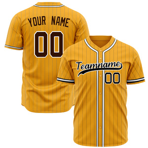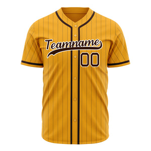 Custom Gold Baseball Jersey (With Black Brown Pinstripe)