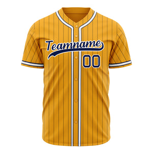 Custom Gold Baseball Jersey (With Navy Navy Pinstripe)