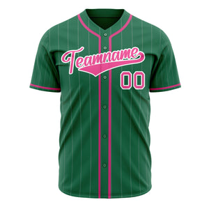 Custom Kelly Green Baseball Jersey (With Pink White Pinstripe)