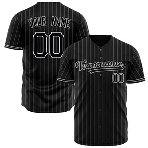Custom Black Baseball Jersey (With White White Pinstripe)