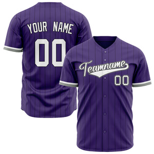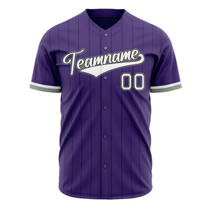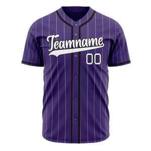 Custom Purple Baseball Jersey (With White Black Pinstripe)