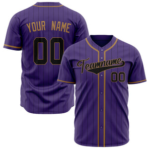 Custom Purple Baseball Jersey (With Gold White Pinstripe)