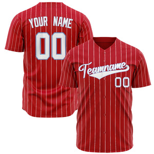 Custom Red Baseball Jersey (With White White Pinstripe)