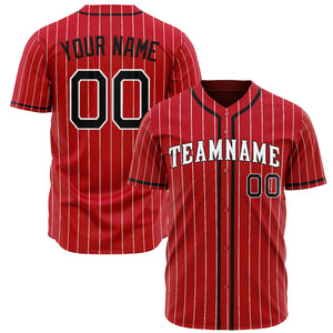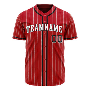 Custom Red Baseball Jersey (With Black White Pinstripe)