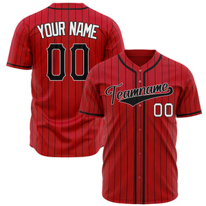 Custom Red Baseball Jersey (With Black Black Pinstripe)
