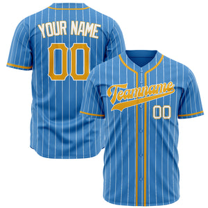 Custom Powder Blue Baseball Jersey (With Gold White Pinstripe)