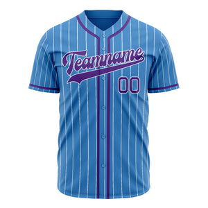 Custom Powder Blue Baseball Jersey (With Purple White Pinstripe)