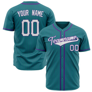 Custom Teal Baseball Jersey (With Purple White Pinstripe)