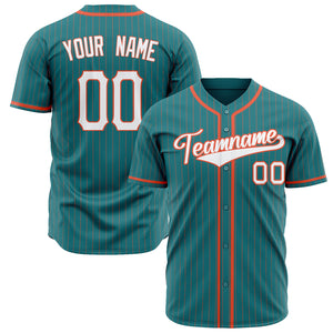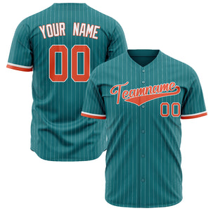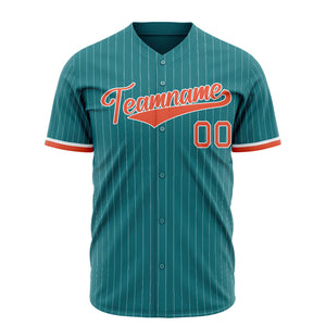 Custom Teal Baseball Jersey (With Orange White Pinstripe)