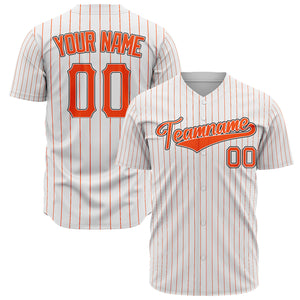 Custom White Baseball Jersey (With Orange Orange Pinstripe)