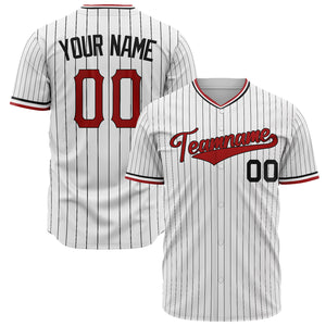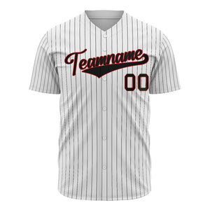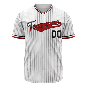 Custom White Baseball Jersey (With Red Black Pinstripe)