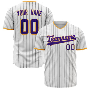 Custom White Baseball Jersey (With Purple Black Pinstripe)