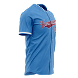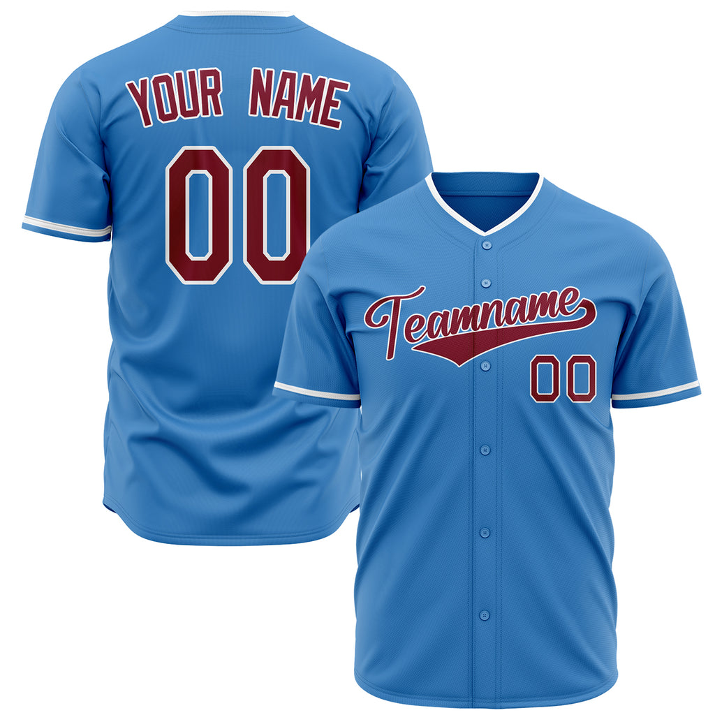 Custom Powder Blue Baseball Jersey (With Crimson Color)