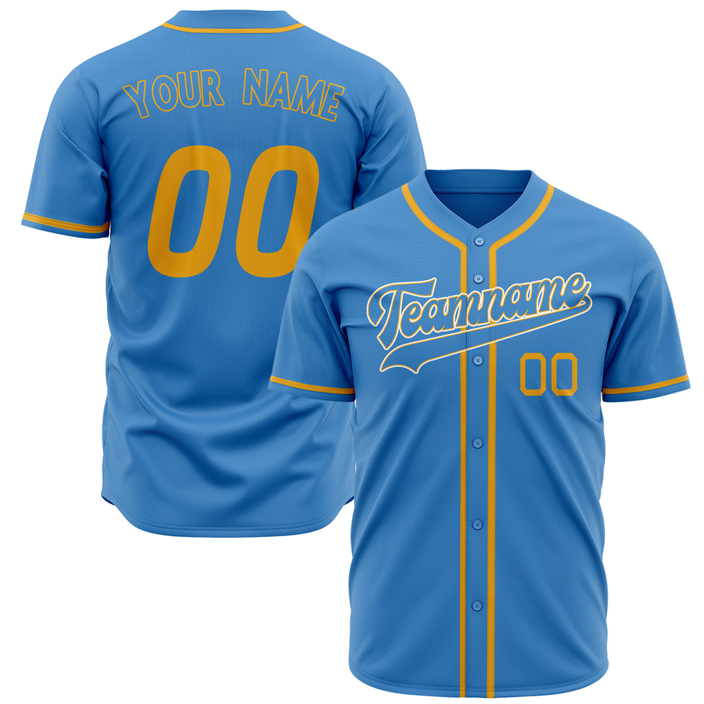 Custom Powder Blue Baseball Jersey (With Gold Color)