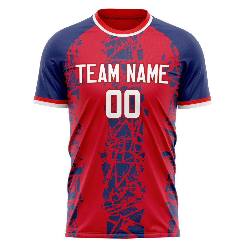 Custom Red Navy Pattern Soccer Jersey