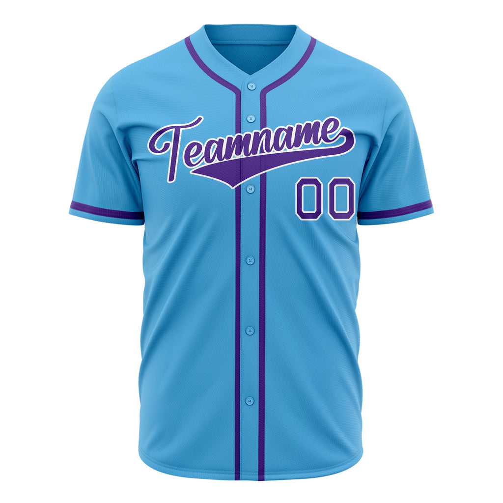 Custom Sky Blue Baseball Jersey (With Purple Color)