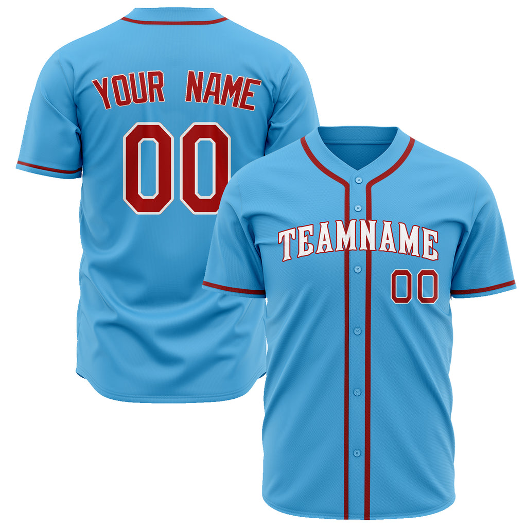 Custom Sky Blue Baseball Jersey (With Red Color)
