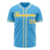 Custom Sky Blue Baseball Jersey (With Yellow Color)
