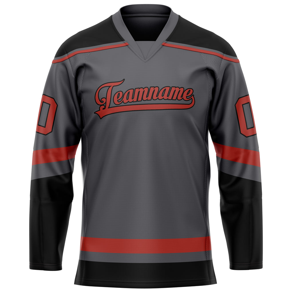Custom Steel Gray Red Solid Colour Hockey Jersey
