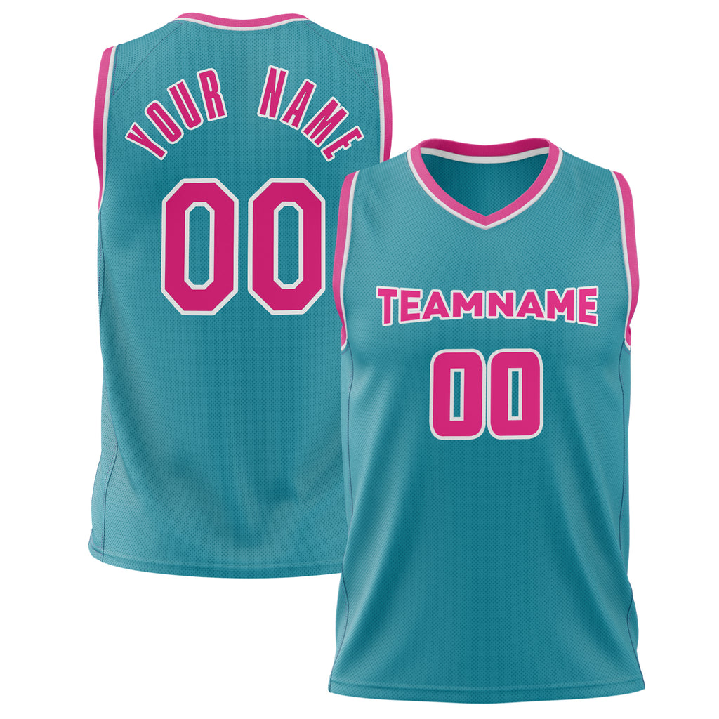 Custom Teal Pink Solid Color Basketball Jersey