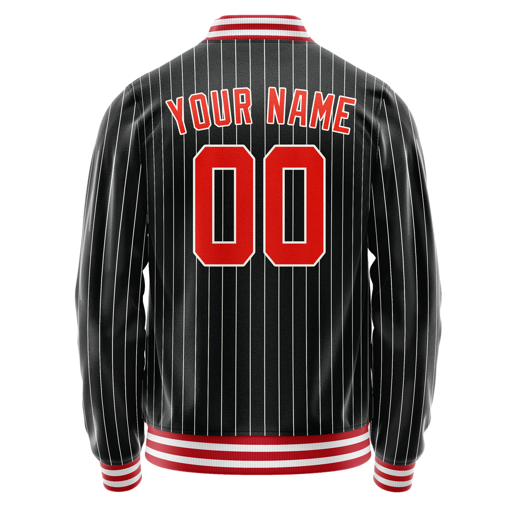 Custom Black Orange Gray Pinstripe Varsity Letterman Jacket