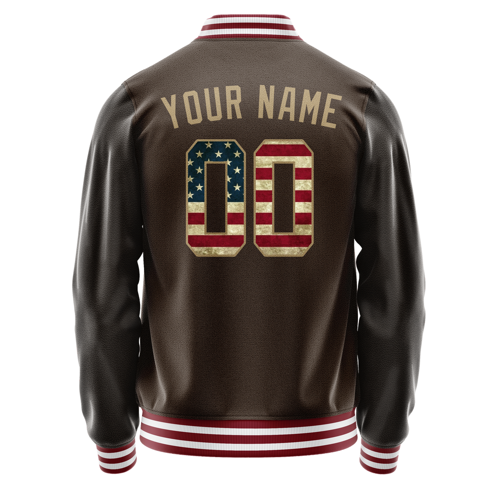 Custom Brown Cream Vintage Usa Flag Varsity Letterman Jacket