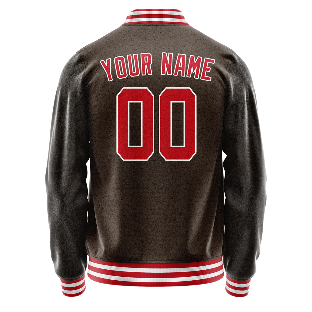 Custom Brown Orange Solid Color Varsity Letterman Jacket