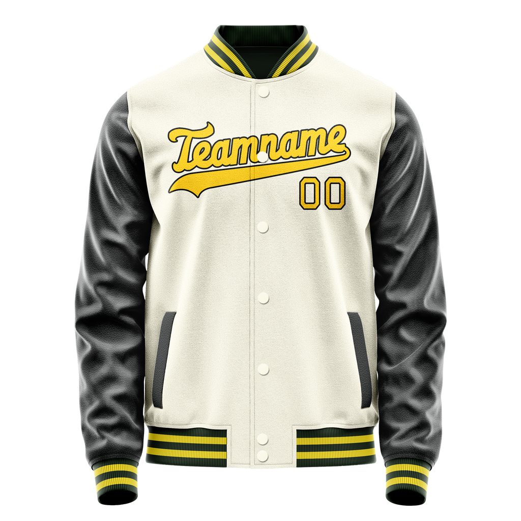 Custom Cream Black Solid Color Varsity Letterman Jacket