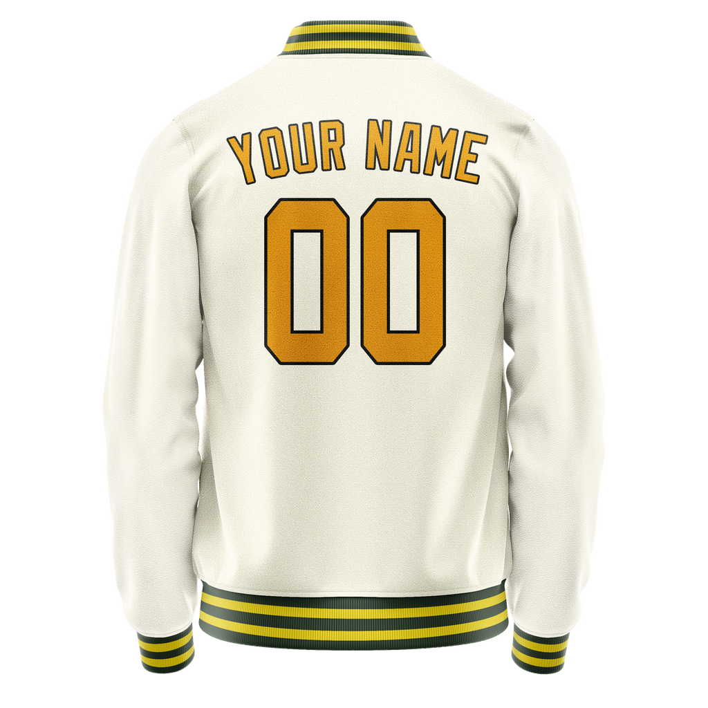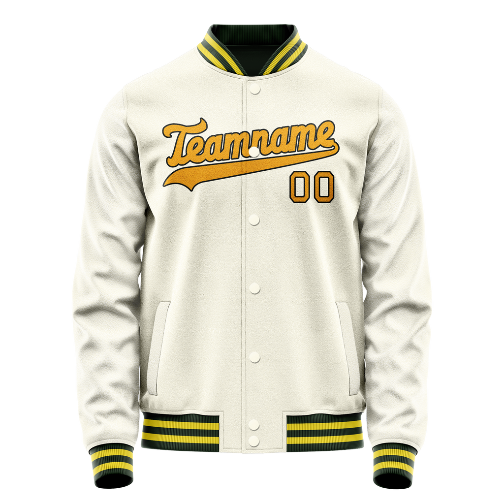 Custom Cream Gold Solid Color Varsity Letterman Jacket
