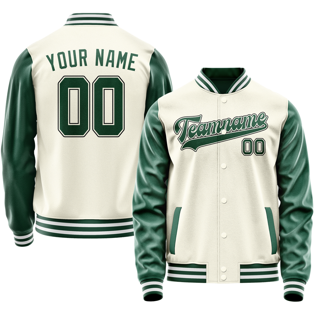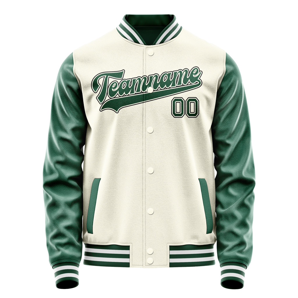 Custom Cream Kelly-Green Solid Color Varsity Letterman Jacket