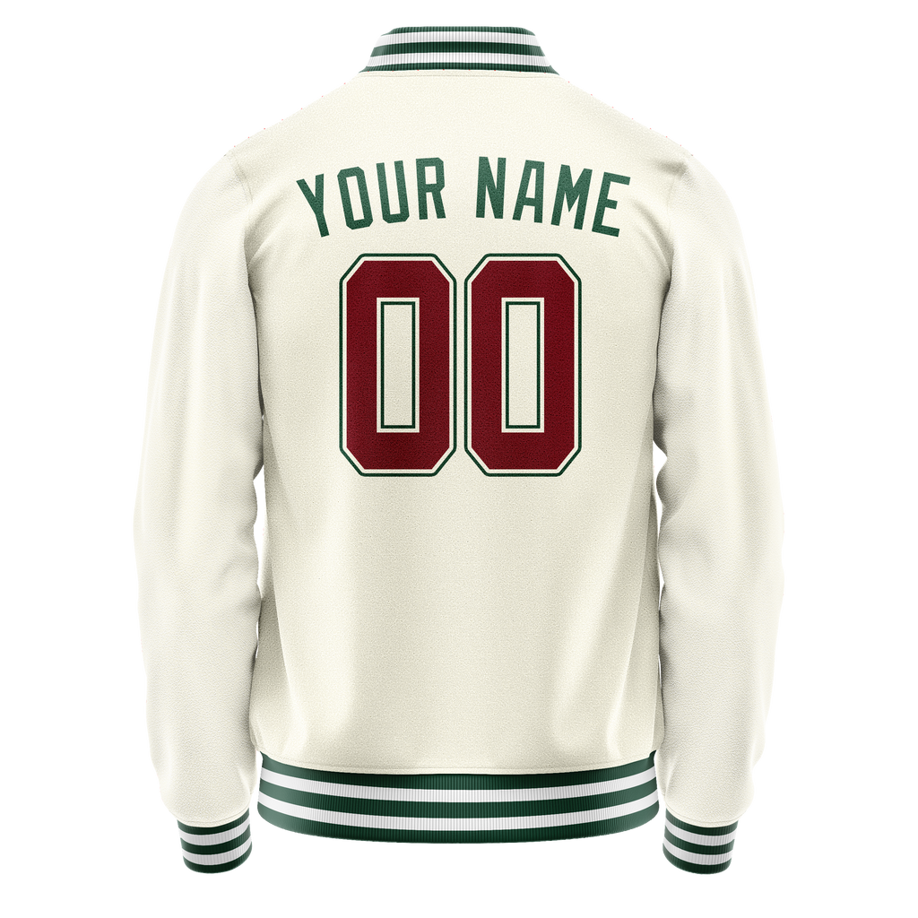Custom Cream Kelly-Green Solid Color Varsity Letterman Jacket