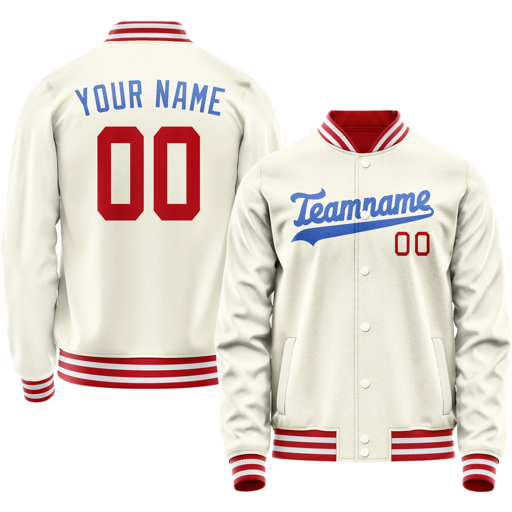 Custom Cream Royal Solid Color Varsity Letterman Jacket